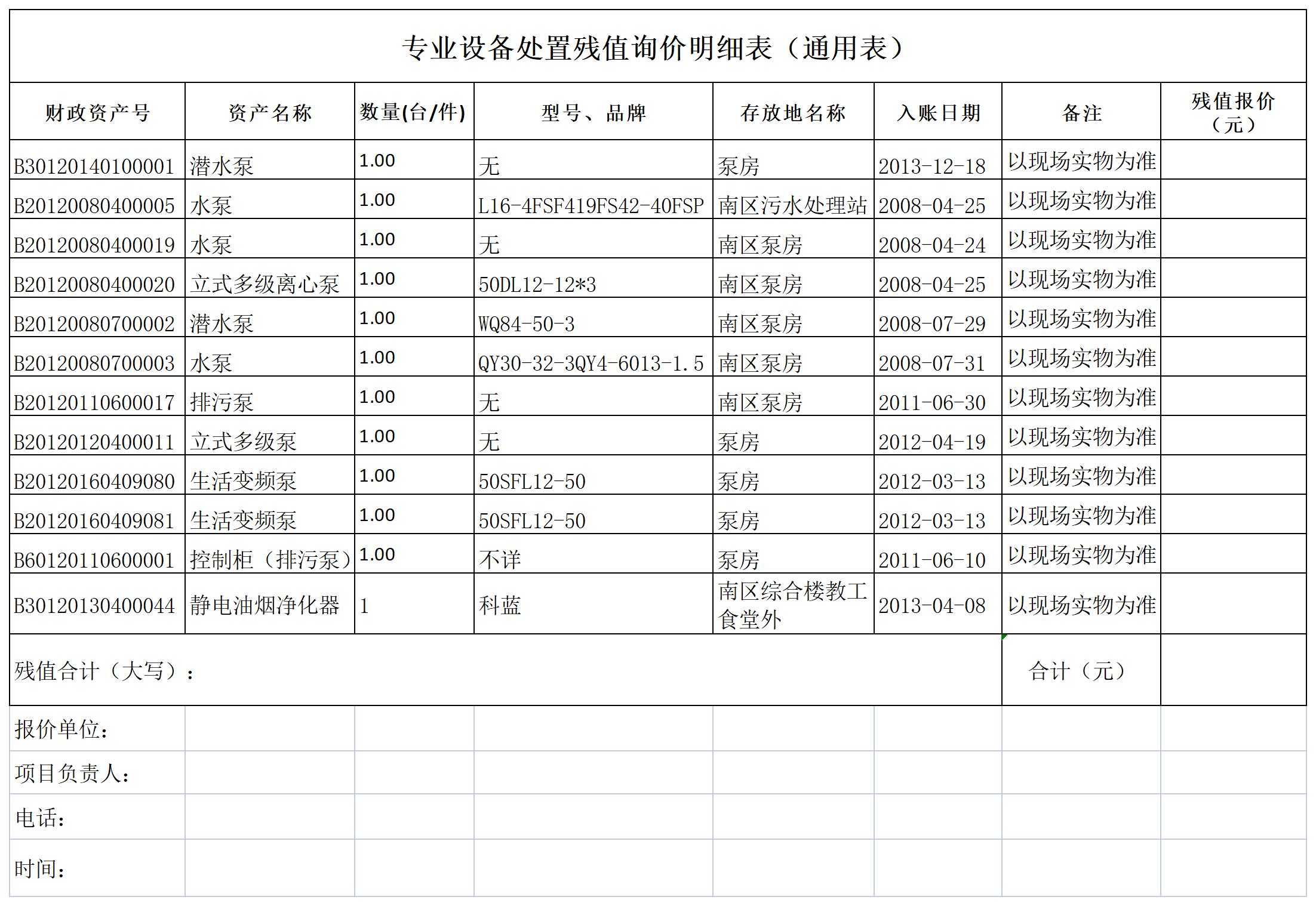 附件:专业设备报废处置残值询价明细表(通用表)